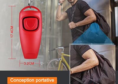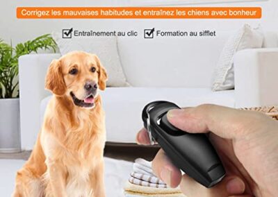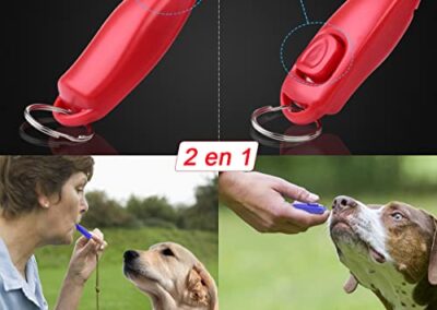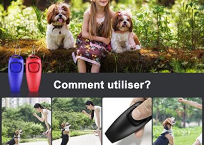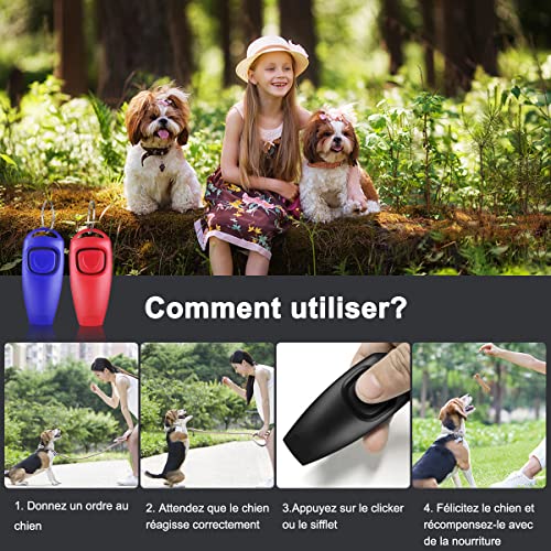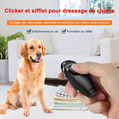 - 😸【2 en 1 Clicker Sifflet Chien Dressage】 Le clicker d’entraînement aura un son clair après avoir appuyé sur le bouton facilement. Gros bouton pour un clic facile et un son puissant. Et peut être utilisé comme sifflet pour dresser votre chien. Pas besoin de dresser durement vos animaux, vous pouvez passer un peu de temps à apprendre à votre chien à apprendre une variété de trucs et de compétences.