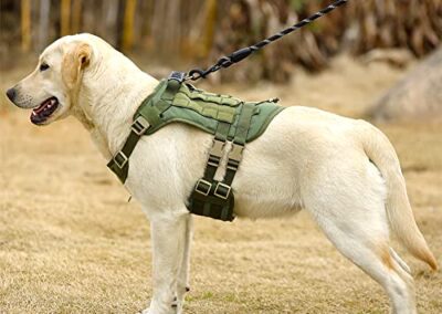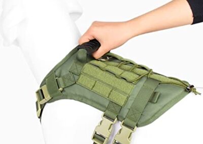 - Design pratique pour une utilisation polyvalente : deux bandes Molle cousues sur les deux côtés, il est compatible avec les pochettes Molle/PAL, permettant à votre chien de transporter son équipement lors de l’entraînement, de la marche, de la randonnée d’aventure. La sangle élastique à l’arrière peut être utilisée pour attacher des articles supplémentaires tels que des bouteilles d’eau. La grande surface des panneaux Velcro vous permet de choisir librement une variété de patchs et de badges pour montrer la personnalité de votre chien.