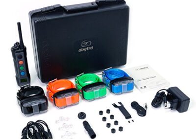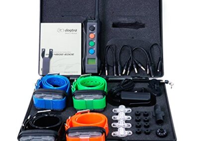 - Lumières de repérage sur le(s) collier-récepteur(s) – 4 couleurs de lumières programmables: Lumière blanche, rouge, verte ou bleue. Électrodes extensibles de 15 à 19 mm Émetteur évolutif 1 à 4 chiens. Il suffit d’ajouter un ou plusieurs collier-récepteurs