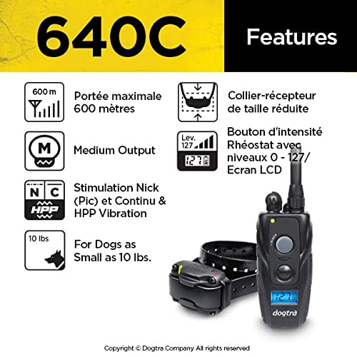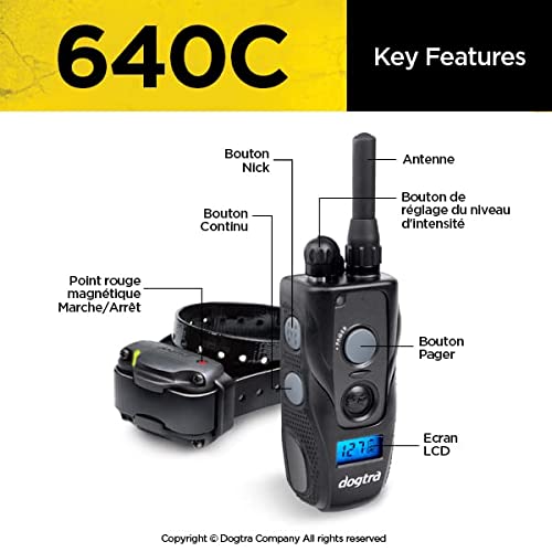 Dogtra 640C Collier de Dressage pour Chien Rechargeable, Étanche IPX9K, 127 Niveaux de Stimulation Électrostatique précis avec Ecran LCD et Vibration – Système 1 Chien