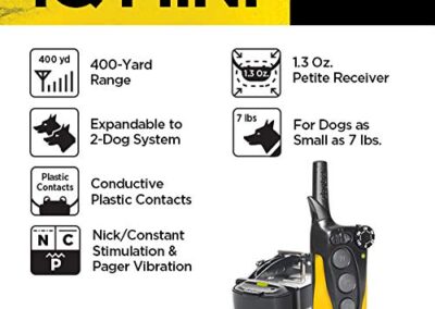 - Caractéristiques avancées : l’unité de dressage pour chien IQ Mini de Dogtra vous offre une possibilité de régler la sensibilité du collier avec facilité. Sélectionnez le mode Momentary Nick pour fournir une seule impulsion de stimulation électrique pendant moins d’une demi-seconde. Si votre chien ne fait toujours pas attention, sélectionnez le mode de stimulation constante pour envoyer une stimulation continue jusqu’à 12 secondes. Le Pager Vibration vous permet d’envoyer une vibration non stimulante pour attirer l’attention de votre chien.
