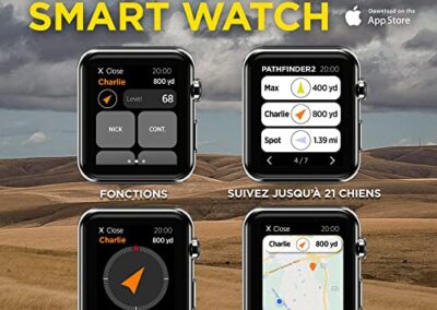 - COMPATIBLE AVEC LES SMARTWATCH : Les utilisateurs de smartwatch peuvent désormais suivre leurs chiens à partir de leur smartwatch avec un accès rapide à l’application Dogtra PATHFINDER2 disponible pour Apple Watch Series 5 et au-delà et Galaxy Watch 4 Series et au-delà. L’application de smartwatch permet d’accéder à vos colliers GPS, votre boussole, vos fonctions de dressage et vos cartes, fournissant ainsi des informations de localisation précises.