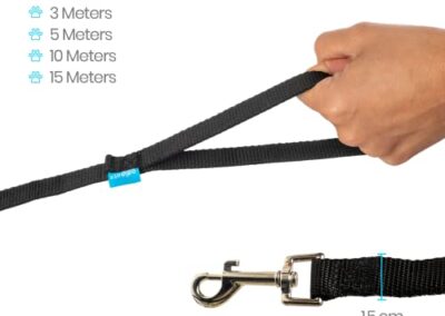 • Plusieurs options : choisissez la longueur qui correspond le mieux à vos besoins, vous pouvez contrôler votre chien de près ou de loin : 1,5 m/3 m/5 m/10 m/15 m, avec plusieurs couleurs : bleu foncé, rouge ou noir.