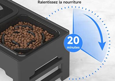 - SOULAGE LA PRESSION ARTICULAIRE: En offrant une hauteur confortable pour accéder à la nourriture et à l’eau, ce gamelle surélevée réduit efficacement la pression exercée sur le cou et les articulations de votre animal et favorise une digestion saine.