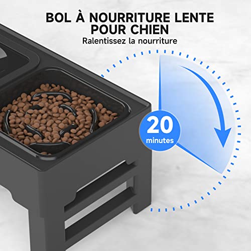 ELS PET Gamelle Chien Surelevee, 2 en 1 Anti Eclaboussure Gamelle de Nourriture et Anti-Glouton Gamelles Eau Chien, 4 Hauteurs RéGlables pour Petits Chien Chat de Compagnie, Moyens et Grands