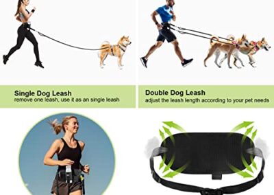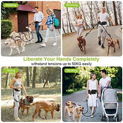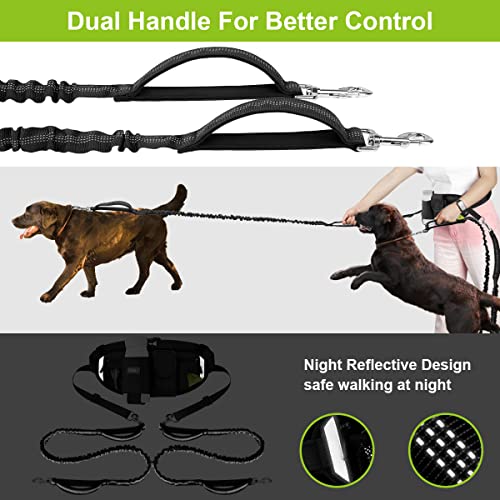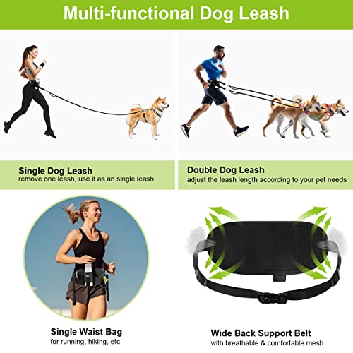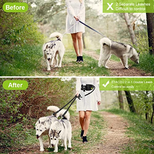 ETACCU Laisse Chien Laisse Mains Libres pour 2 Chiens avec poignée de Circulation Robuste, Ceinture réglable avec Pochette (pour 2 Chien)