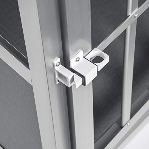 • Clip de fixation & Verrou : Fixez les 2 clips à deux côtés de la caisse de transport en aluminium. Grâce à lui et à des sangles, vous pouvez bien fixer la caisse dans la voiture. La serrure à 2 clés empêche le chien d’ouvrir la porte et de s’y échapper