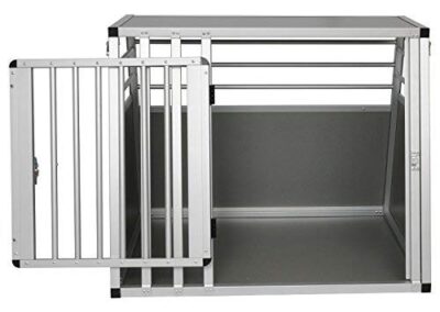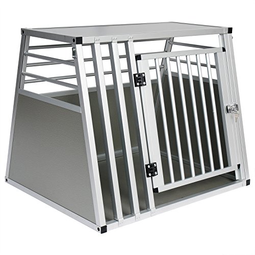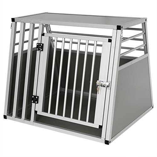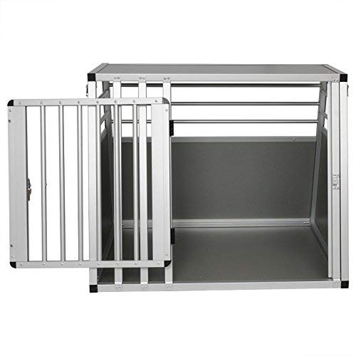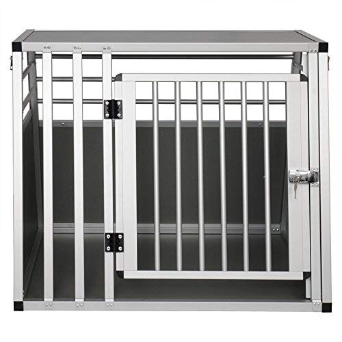 EUGAD Porte-Chien en Aluminium, Cage de Transport pour Animaux de Compagnie, Cage pour Grands Chiens, Husky, Labrador, Golden Retriever, Samoyède, Argenté, L80 x H65 x P65 cm 0061HT