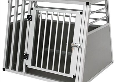 - Clip de fixation & Verrou : Fixez les 2 clips à deux côtés de la caisse de transport en aluminium. Grâce à lui et à des sangles, vous pouvez bien fixer la caisse dans la voiture. La serrure à 2 clés empêche le chien d’ouvrir la porte et de s’y échapper