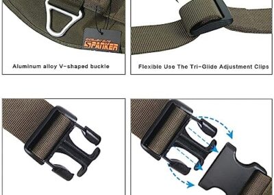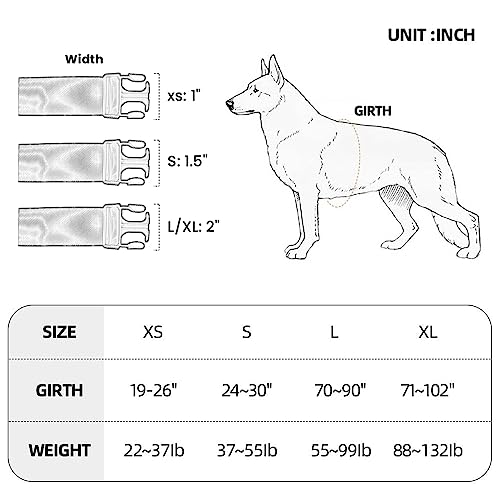 - Ajustement libre et boucle à dégagement rapide. La sangle ventrale par 2 ajusteurs coulissants pour un ajustement bidirectionnel avec des boucles à dégagement puissantes. La sangle de poitrine rembourrée douce empêche le cou de votre chien de se déchirer lorsque votre chien change de direction ou avant soudainement.