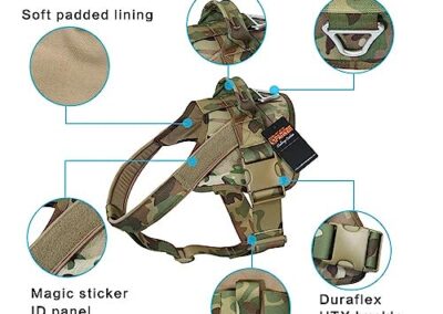 - Il y a un panneau d’identification magique sur les deux côtés de ce harnais de dressage pour chien qui peut être placé pour les patchs. 4 tailles et 5 couleurs disponibles, veuillez suivre le tableau des tailles (vous référer à l’image de la taille) pour mesurer soigneusement votre chien avant de passer commande afin de vous assurer que le harnais est bien adapté à votre chien.