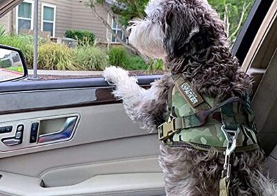 - Le haut du harnais pour chien de service a une boucle en forme de V en alliage d’aluminium, plus forte traction que le ferroalliage et l’alliage de zinc, peut être attaché à une laisse pour chien pour garder votre chien près de vous plus facilement par votre contrôle.