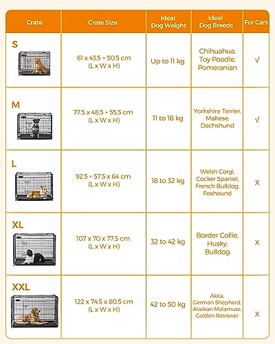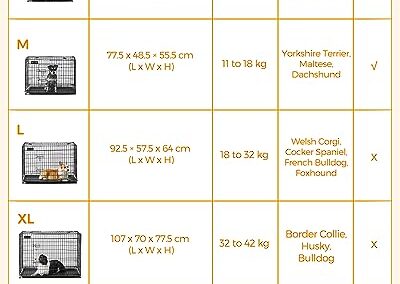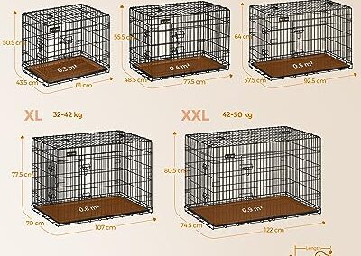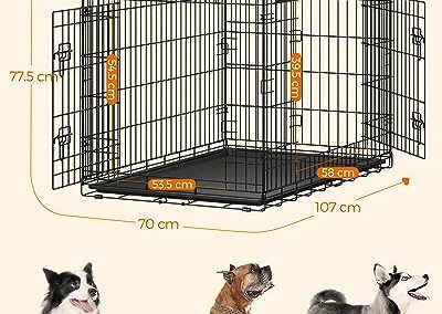 - [Choisissez la bonne taille] Cette cage de 107 x 70 x 77,5 cm convient aux chiens de 32 à 42 kg. Races recommandées : Border Collie, Husky, Bulldog, etc. Veuillez lire nos conseils de mesure dans les précautions pour choisir la bonne taille