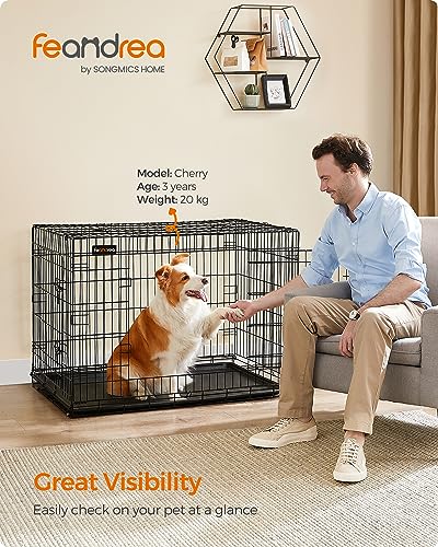 Feandrea Cage pour Chien Pliable avec 2 Portes, Plateau Amovible, 107 x 70 x 77,5 cm, Taille XL, Noir PPD42H