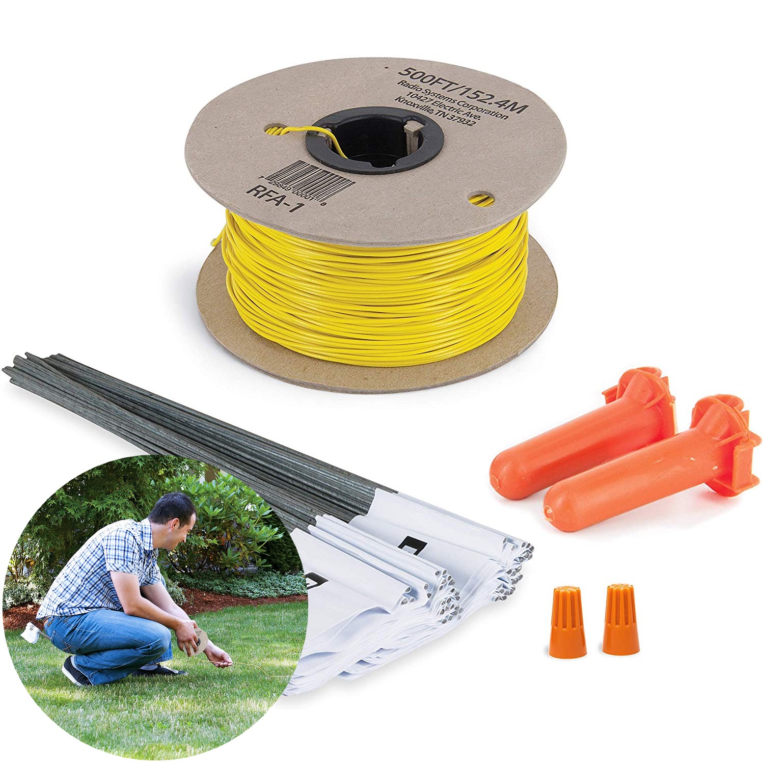 Rajoutez fil et fanions supplémentaires et augmentez le périmètre dont peut profiter votre chien. Cet ensemble complète le fil et les fanions livrés avec votre système de clôture anti-fugue avec fil In-Ground Fence™. Le kit comprend une bobine de fil de 150 mètres. Ainsi que 2 connecteurs de fil avec protections étanches et 50 fanions de délimitation. Fil monobrun de 0.75 mm2 et résistant pour une utilisation extérieure.