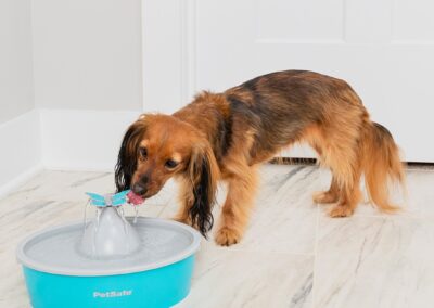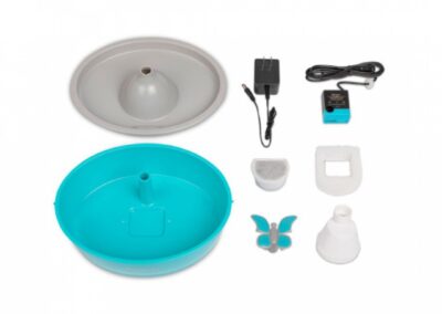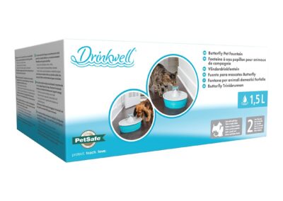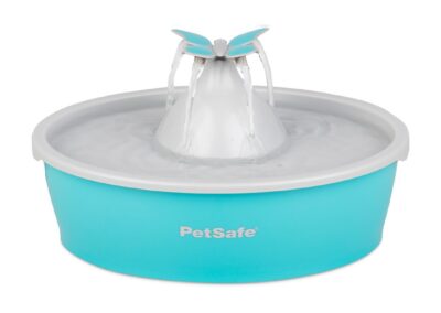 Fontaine à eau papillon pour chats et petits chiens d Drinkwell® de PetSafe™. Mettez à disposition de votre compagnon à quatre pattes de l’eau courante grâce à la fontaine à eau papillon Drinkwell® de PetSafe® pour animaux de compagnie. Le débit constant d’eau courante attire les chiens et les chats vers la fontaine, les incite à boire et les maintient hydratés. Le papillon détachable apporte une touche de décoration amusante à votre fontaine et crée quatre flux à écoulement libre auxquels votre animal peut boire. Le papillon se retire facilement pour produire un flux silencieux et effervescent.