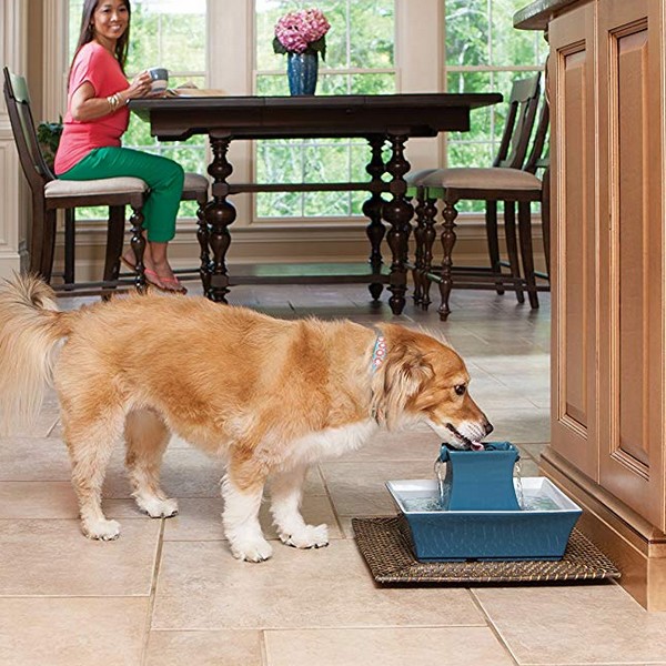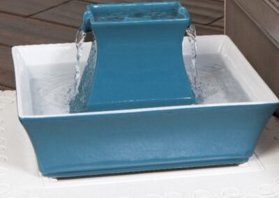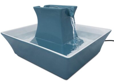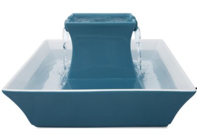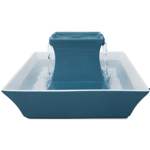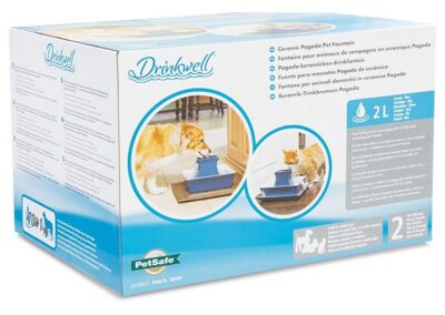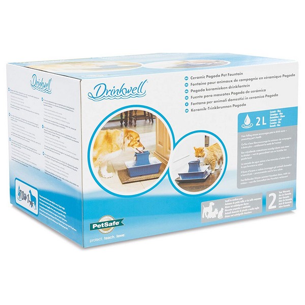 Fontaine en céramique bleu Pagoda Drinkwell, de la marque PetSafe pour chat, chien et animaux de compagnie met à disposition de votre animal deux litres d’eau fraîche et filtrée. fait circuler l’eau de votre animal. La fontaine pour animaux de compagnie Pagoda offre deux litres d’eau fraîche et filtrée. Ce modèle en céramique est facile à nettoyer. Le double courant d’eau à écoulement libre aère l’eau pour la rafraîchir et encourager les animaux à boire plus, offrant ainsi une meilleure solution d’hydratation pour votre animal.