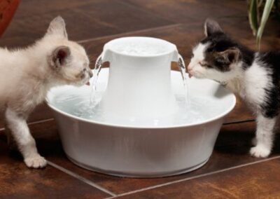Les fontaines pour animaux encouragent vos animaux à boire plus, parce qu’ils sont instinctivement attirés par l’eau en mouvement. Les fontaines pour animaux filtrent et laissent l’eau circuler en permanence pour empêcher la croissance de bactérie et gardent l’eau beaucoup plus propre et fraiche qu’une eau stagnante dans un bol.