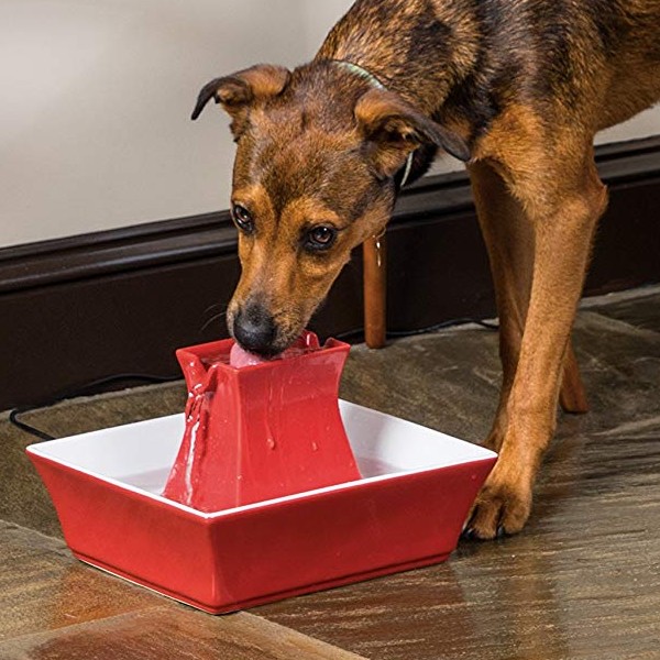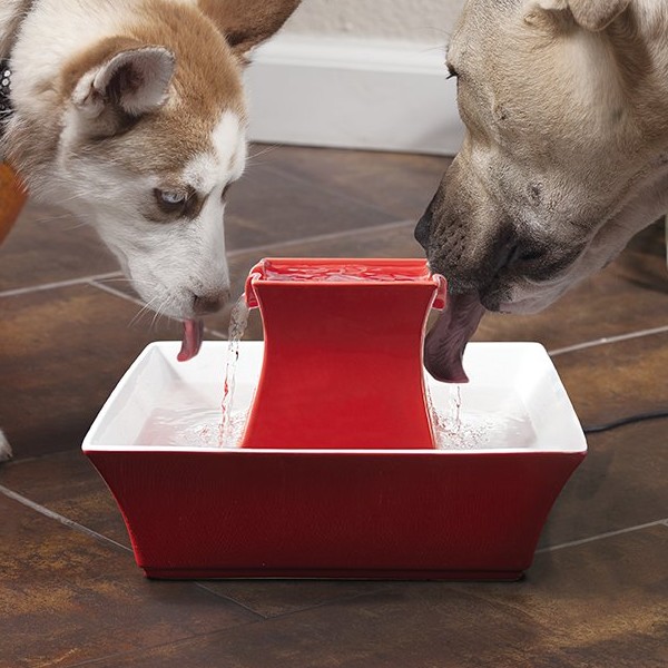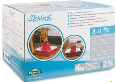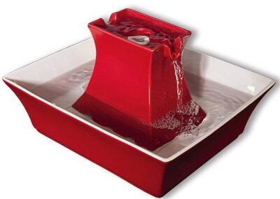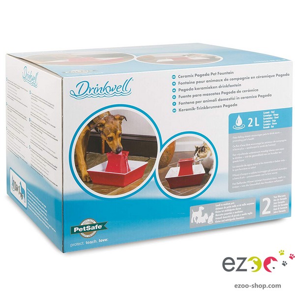 Fontaine en céramique rouge Pagoda Drinkwell, de la marque PetSafe pour chat, chien et animaux de compagnie met à disposition de votre animal deux litres d’eau fraîche et filtrée. fait circuler l’eau de votre animal. La fontaine pour animaux de compagnie Pagoda offre deux litres d’eau fraîche et filtrée. Ce modèle en céramique est facile à nettoyer. Le double courant d’eau à écoulement libre aère l’eau pour la rafraîchir et encourager les animaux à boire plus, offrant ainsi une meilleure solution d’hydratation pour votre animal.