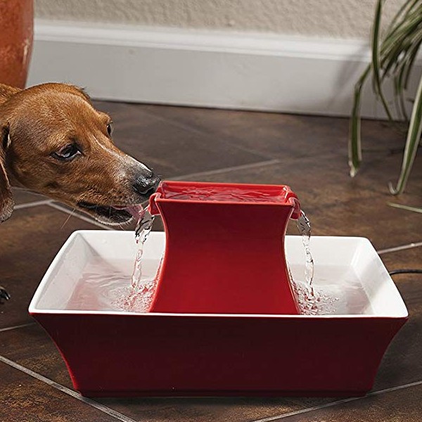 Fontaine en céramique couleur rouge, de la marque PetSafe pour chat, chien et animaux de compagnie met à disposition de votre animal deux litres d’eau fraîche et filtrée. fait circuler l’eau de votre animal. La fontaine pour animaux de compagnie Pagoda offre deux litres d’eau fraîche et filtrée. Ce modèle en céramique est facile à nettoyer. Le double courant d’eau à écoulement libre aère l’eau pour la rafraîchir et encourager les animaux à boire plus, offrant ainsi une meilleure solution d’hydratation pour votre animal.