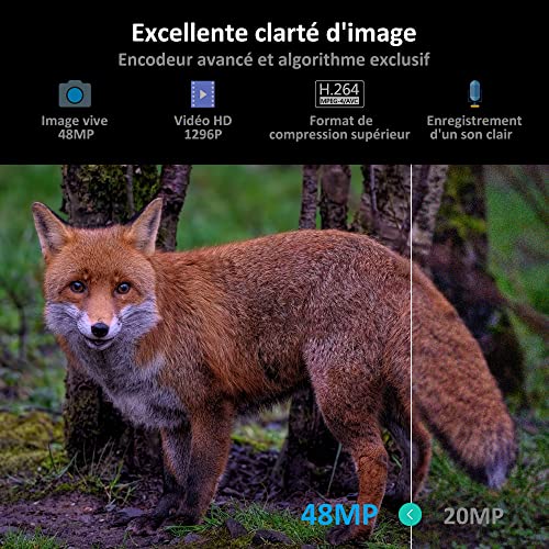 - Qualité d’image Ultra-claire: Cette caméra de chasse capture des images fixes cristallines de 48MP et des vidéos avancées H.264 1080P@30fps avec son, offrant des relectures claires et fluides. La taille de fichier compacte de la caméra utilise 80% moins de stockage par rapport à MJPEG. Les vidéos sont au format MP4, les rendant compatibles avec tous les lecteurs.