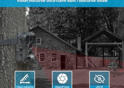 - 【Images 32MP et Vidéos 1296P H.264】 Équipé d’un objectif optique starlight de pointe avec système d’image mis à jour, la caméra de chasse offre des images 32MP cristallines et des vidéos 1296P vives avec un son clair. Les vidéos sont bien compressées au format H.264 et offrent une économie totale de 30 à 80 % sur l’espace de stockage par rapport aux caméras de chasse conventionnelles.