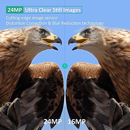 - Fiable : objectif optique de qualité supérieure avec angle de vision large à 110° et technologie de correction de distorsion, fournit des images cristallines de 24MP et des vidéos HD 1296P avec enregistrement sonore clair. Les vidéos sont bien compressées au format MP4 H.264, prend moins de 80% de capacité lors du stockage ou du transfert de vidéos que la normale.