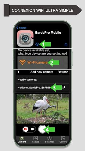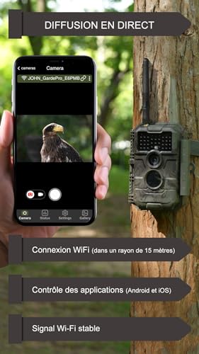 • Connexion Wi-Fi innovante : L’E6P MAX est doté d’un module Wi-Fi ultra basse consommation intégré qui se connecte rapidement à votre smartphone. Avec l’application mobile GardePro gratuite et conviviale, la visualisation des flux en direct de la caméra, l’ajustement des paramètres de la caméra et la prévisualisation/téléchargement des médias de la caméra sont un jeu d’enfant dans une plage de 15 mètres (en zones ouvertes).
