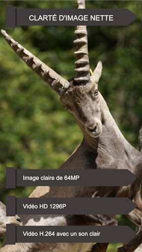 GardePro E6P Max Caméra de Chasse, WiFi, Batterie Rechargeable 8000 mAh, Carte SD Intégrée, 64MP 1296P, Caméra E6PMB No Glow Infrarouge Vision Nocturne, Champ de Vision Large de 110°