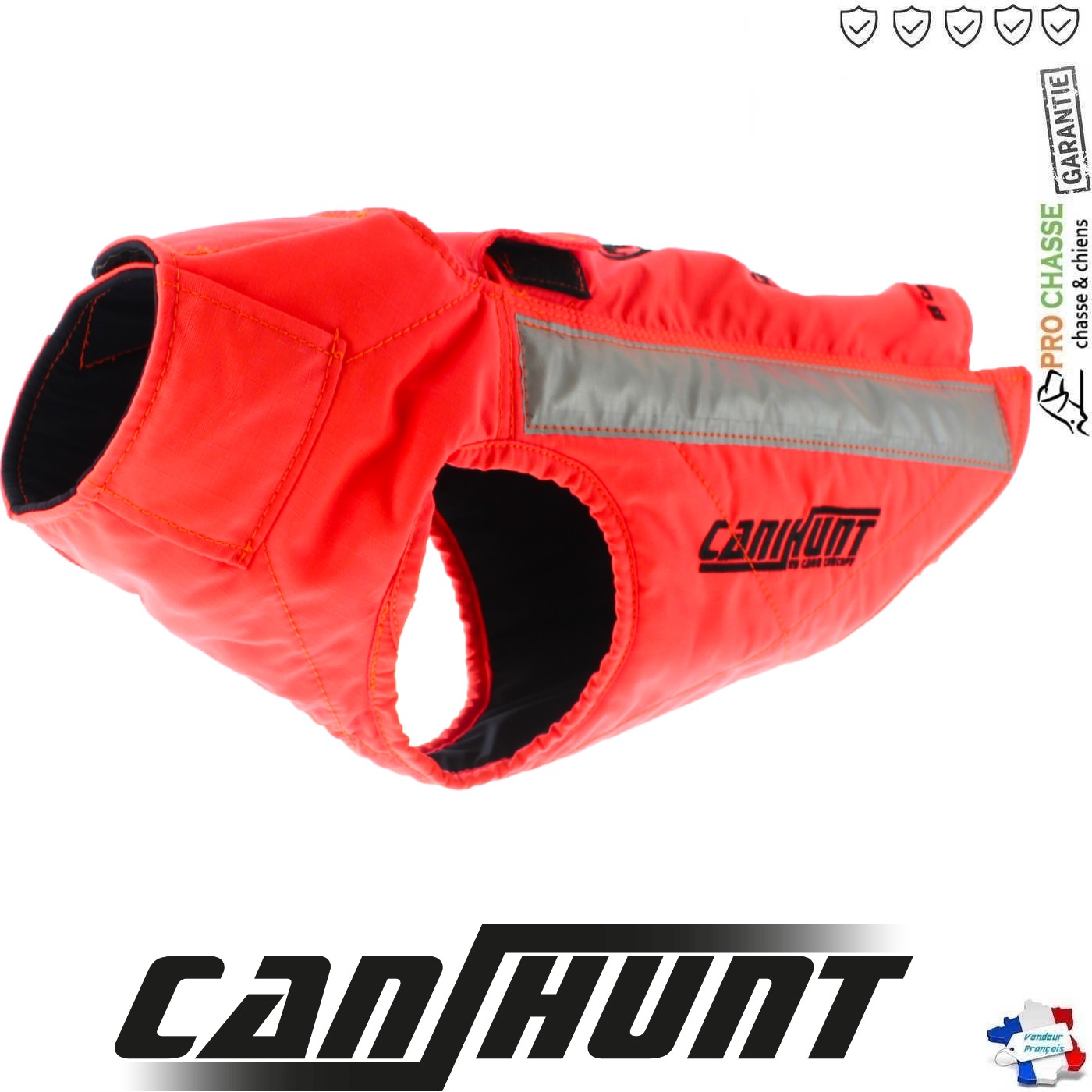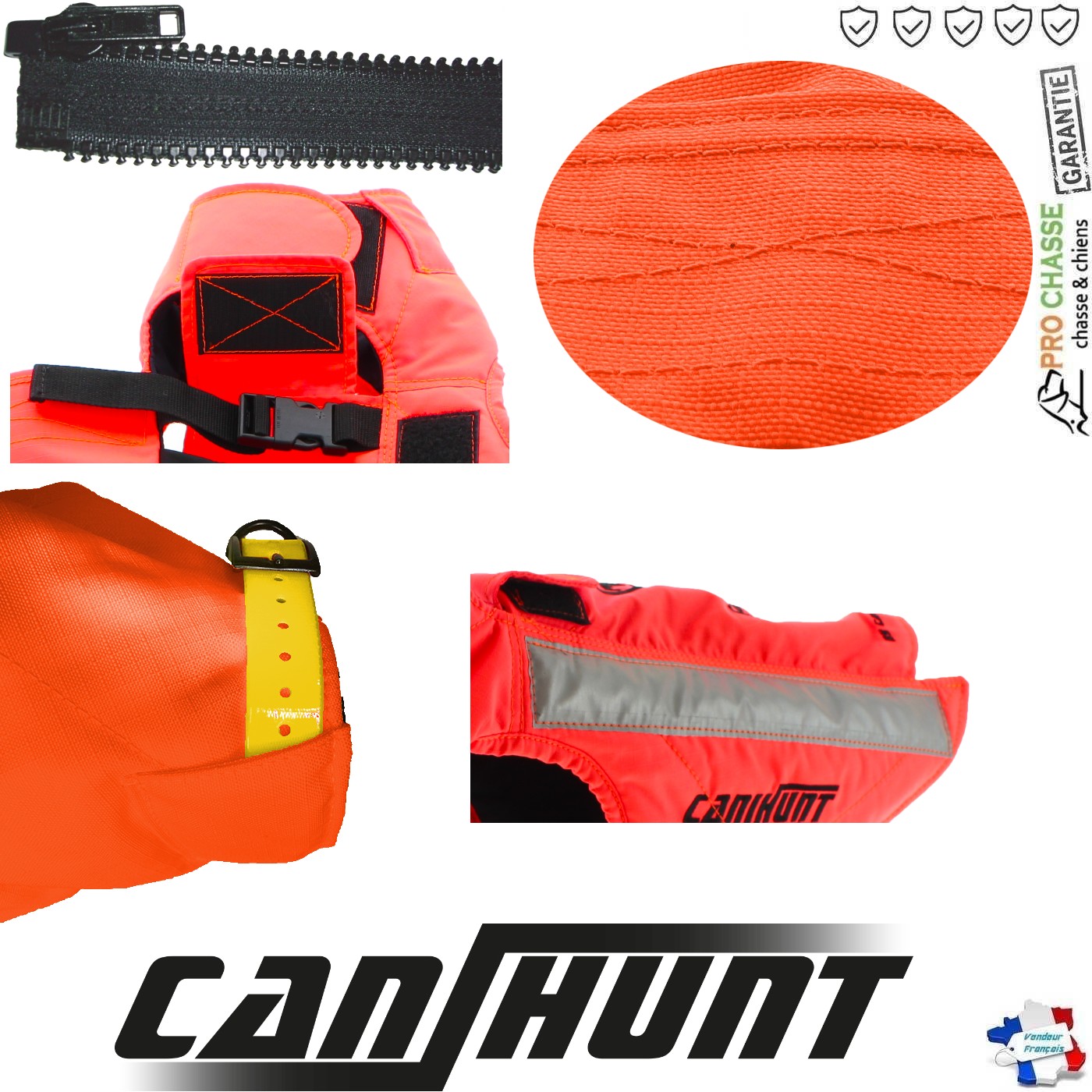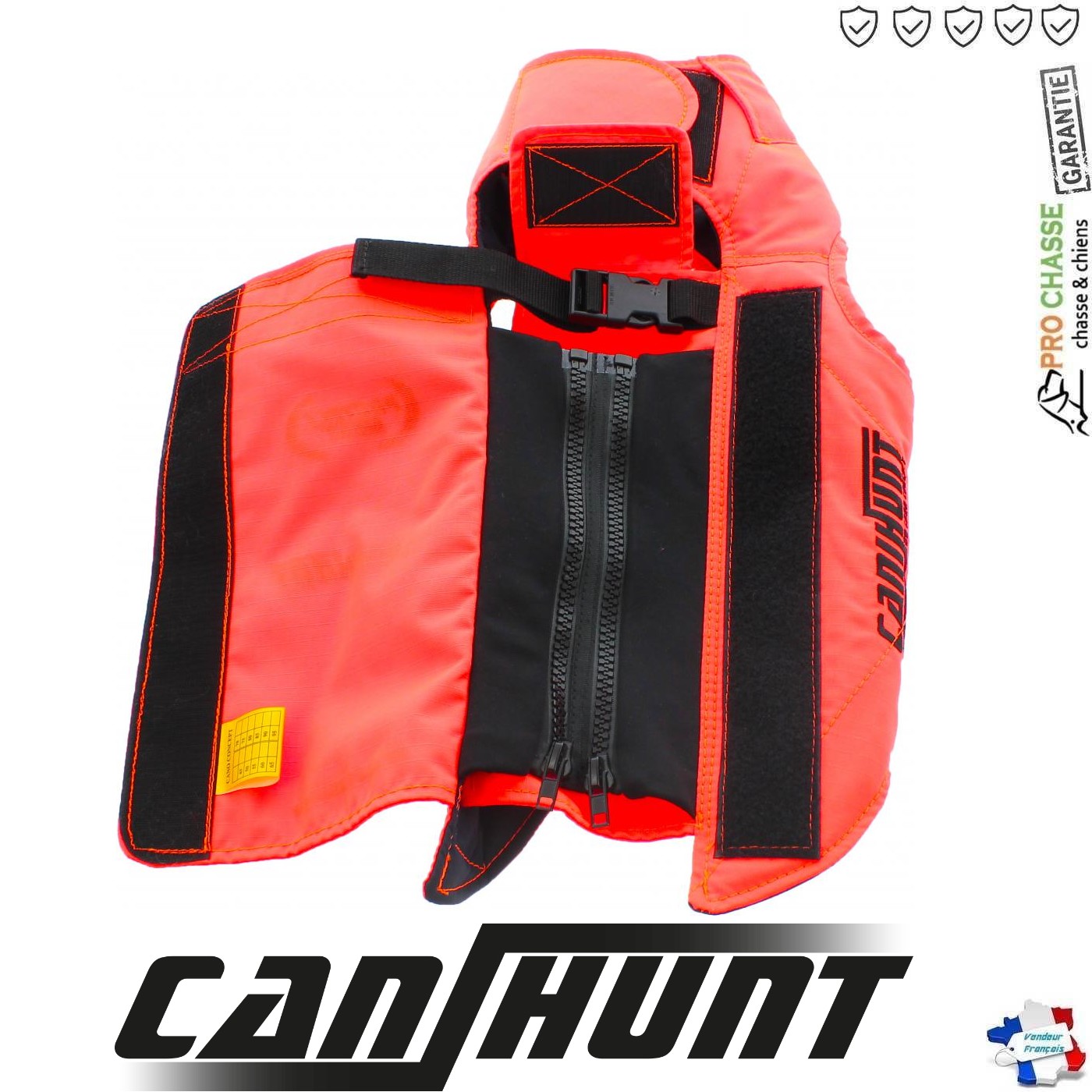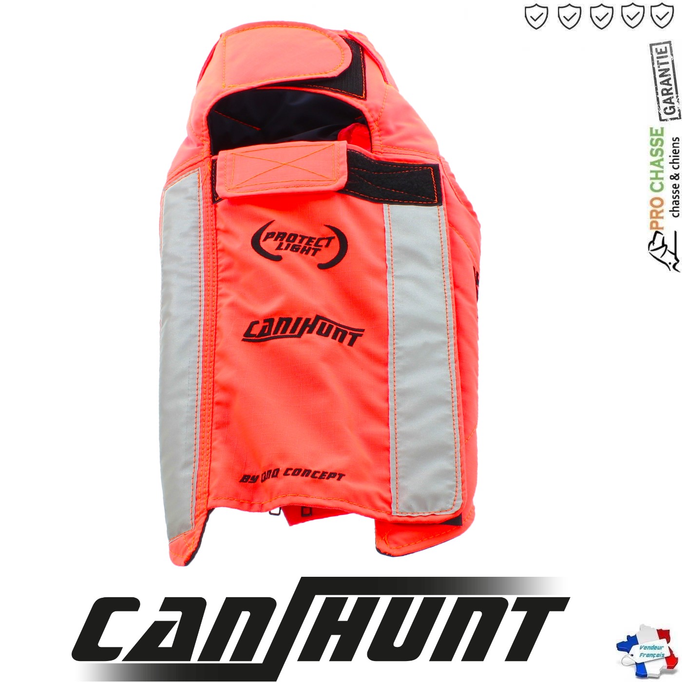 Gilet pour chien de chasse Taille 85 Orange CaniHunt Protect Light. Le Gilet PROTECT LIGHT pour chien de canihunt a été conçu afinde proposer un modèle de gilet souple, léger et résistant.