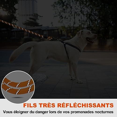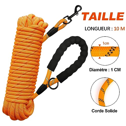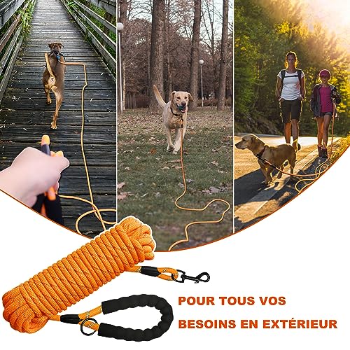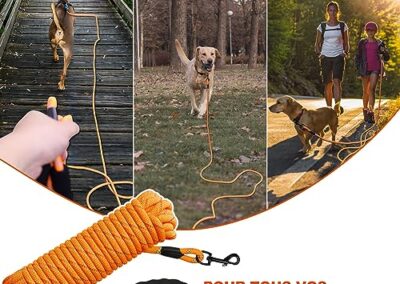 - Haute Visibilité et Réflexion: La couleur orange vif de notre longe pour chien 10m d’entraînement permet à votre chien d’être toujours visible, même dans des conditions de faible luminosité.Dotée de coutures réfléchissantes, cette laisse augmente encore la sécurité lors des promenades tôt le matin ou tard le soir en captant et en réfléchissant la lumière. Vous aurez l’esprit tranquille en sachant que votre animal est facilement visible et protégé dans toutes les situations d’éclairage.