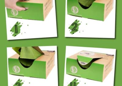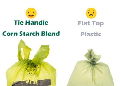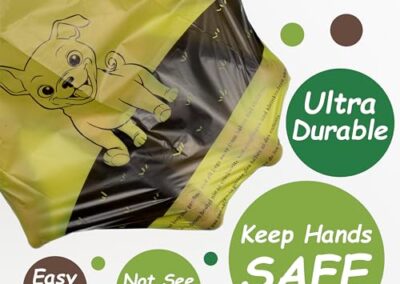 - Matériau principal: Contrairement aux autres sacs à crottes, les nôtres sont fabriqués avec un mélange d’amidon de maïs plus respectueux de l’environnement.