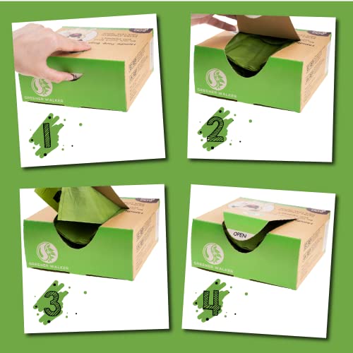 GREENER WALKER Sacs à Déjections Canines avec des Poignées Faciles à Attacher, 600 Scas,pour Déchets Chiens,étanches,Extra larges,épais et résistants(Vert)