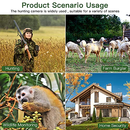 - 📷 【Fonctionnalités Multifonctionnelles et Précieuses】 La caméra de surveillance est parfaite pour les activités de plein air, y compris l’observation ou la chasse de la faune, la sécurité à domicile, la surveillance des propriétés, la surveillance et la reconnaissance de la faune et la sécurité agricole. 3 modes de capture (photo, vidéo, photo et vidéo), horodatage, intervalle de temps, enregistrement sonore, fuseau horaire programmable, enregistrement en boucle, protégé par mot de passe.