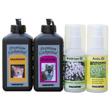 • Composé de Premium Lock renard 250 ml, Premium Lock Marder 250 ml, huile de Anis 100 ml, huile de valériane 100 ml