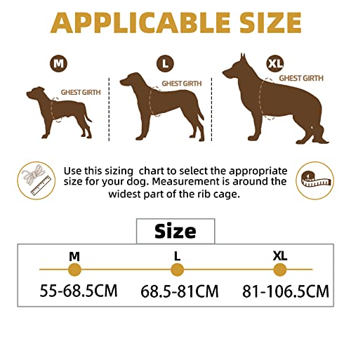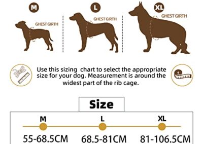 • Harnais pour animaux de compagnie de tailles variables : il existe trois tailles qui sont M, L et XL. Il convient donc à différents types de corps de chiens. Veuillez MESURER la circonférence de la poitrine et du cou avant l’achat. Vous pouvez en choisir un qui convient à vos adorables chiens.