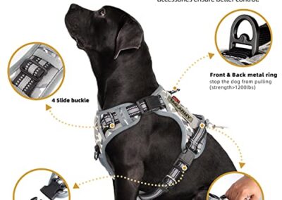 • Harnais pour chien facile à mettre et réglable : notre harnais pour chien dispose de QUATRE points de réglage pratiques (DEUX pour l’épaule, DEUX pour la poitrine) pour assurer un ajustement parfait. QUATRE boucles à dégagement rapide sont conçues non seulement pour un enfilage et un retrait faciles, mais peuvent également résister à une grande force de traction, offrant une sécurité en toute occasion.