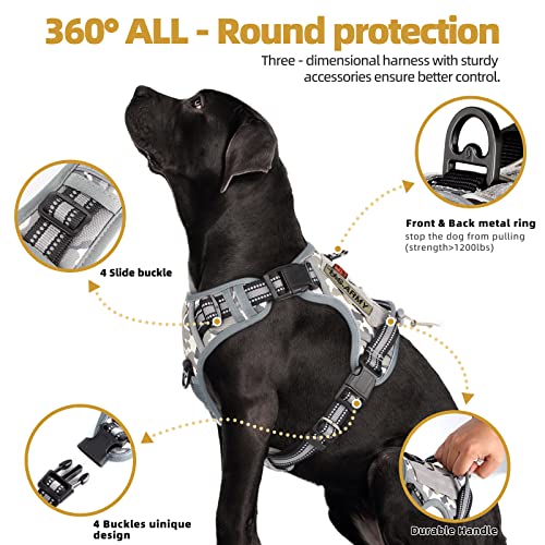 • Harnais pour chien sans traction et réfléchissant : deux attaches de laisse en métal sécurisées de notre harnais pour chien sans traction sont conçues pour différentes occasions. Clip dorsal quotidien pour la marche ou le jogging décontracté des chiens bien entraînés. Le clip avant anti-traction aide à décourager votre chien de tirer. Les motifs réfléchissants super brillants garantissent une haute visibilité la nuit pour plus de sécurité.
