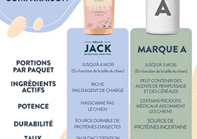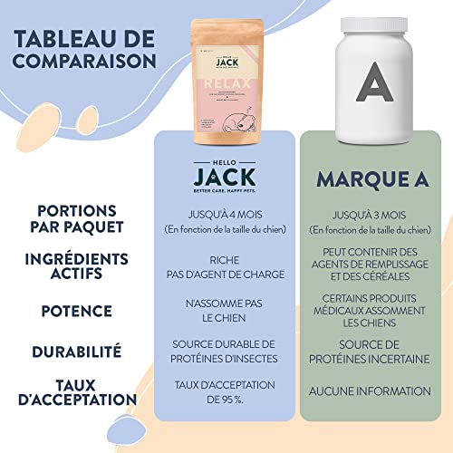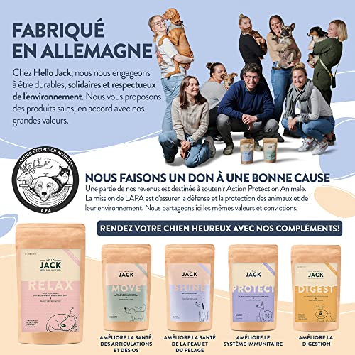Hello Jack Complément Alimentaire Calmant pour Chien – Anti Stress Chien – Friandises pour Chien Apaisantes, pour Soulager Le Stress & Équilibrer Les Émotions – Goût Beurre de Cacahuète