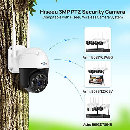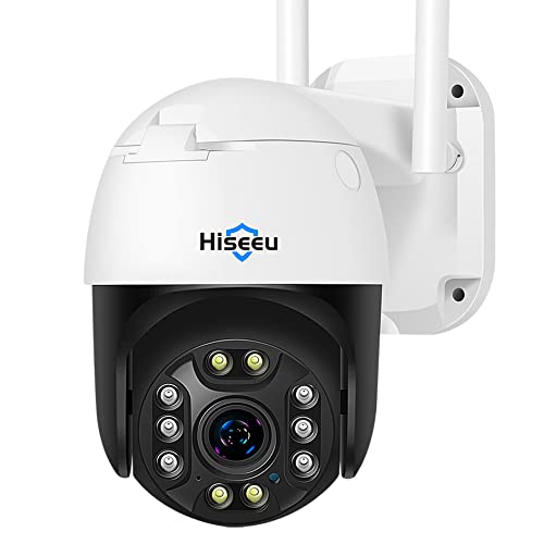 Hiseeu 【5X Zoom Optique】 2K PTZ Caméra Surveillance WiFi Exterieure,Vision Nocturne en Couleur, 3MP PTZ Caméra IP Suivi Automatique Pan 355° Tilt 90°,Détection de Humaine,Audio Bidirectionnel,IP66