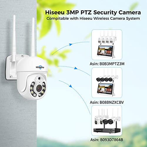 Hiseeu 2K Caméra de Surveillance WiFi Extérieure, 3MP PTZ Caméra IP Vision Nocturne Couleur Détection de Mouvements Humaine Suivi Automatique 355° 90° Audio Bidirectionnel Carte SD Étanche IP66
