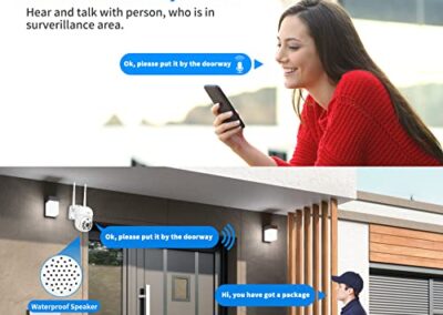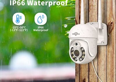 • 【Audio Bidirectionnel et étanchéité IP66】 Avec la fonction audio bidirectionnelle,la caméra de sécurité PTZ peut soutenir vous parler avec vous famille ou les visiteurs à n’importe où ou à tout moment sur votre téléphone mobile, et vous pouvez avertir et chasser la personne suspecte de quitter votre maison. Avec un taux d’étanchéité IP66, la super endurance vous garantit une protection complète dans toutes les conditions météorologiques.