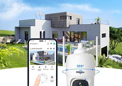 - 【Vision à 360° PTZ et vision nocturne en couleur 2K】La caméra solaire PTZ Hiseeu prend en charge une rotation horizontale à 355° et verticale à 90°, vous pouvez surveiller tous les coins de votre maison avec la vue à 360°, réduisant l’angle mort. Protégez votre propriété et votre sécurité tout le temps. La caméra de sécurité solaire PTZ en résolution 2K vous permet de voir l’image plus clairement que 1080p. Avec la vision nocturne en couleur de la caméra PTZ, il peut fournir des images en couleur même à la tombée de la nuit sombre, avec deux projecteurs.