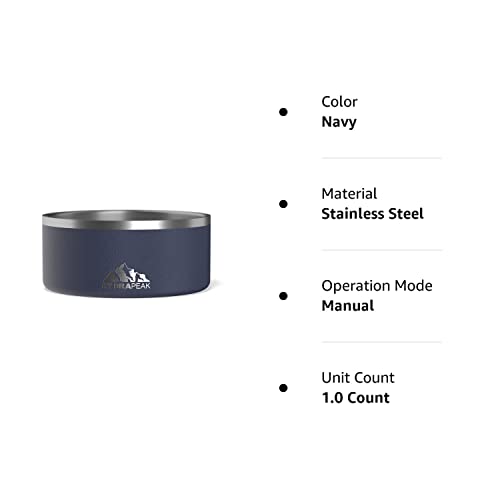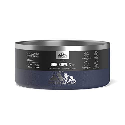 Hydrapeak Gamelle antidérapante en acier inoxydable pour chien, gamelle d’eau pour chien de grande taille, gamelle pour chien de petite taille, 947,2 g/1,8 l, plusieurs tailles (8 tasses, bleu marine)