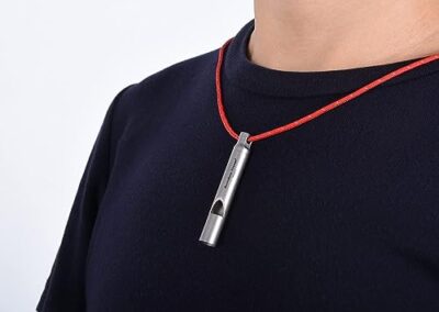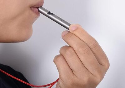 - ● Le noyau du sifflet est fabriqué en plastique PP. Et il dispose également d’un trou, qui peut non seulement être accroché autour du cou par un cordon solide, mais également accroché au porte-clés, vous empêchant de le perdre lors de l’utilisation.
