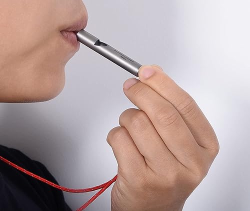 iBasingo Sifflet en Titane Camping en Plein air Randonnée Chasse Escalade Survie d’urgence Sifflet Fort Entraîneurs Entraînement Sport Porte-clés Sifflet avec lanière Paquet de 2