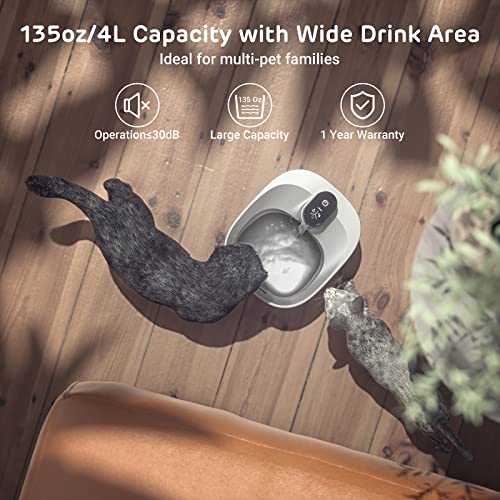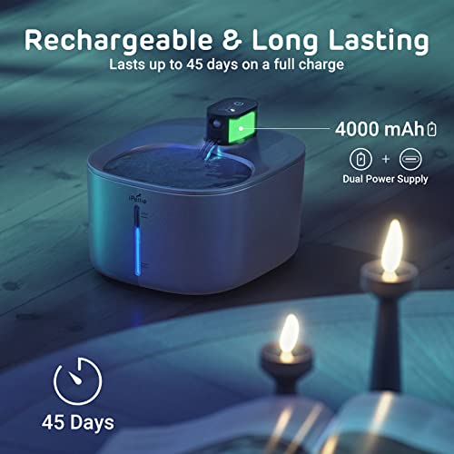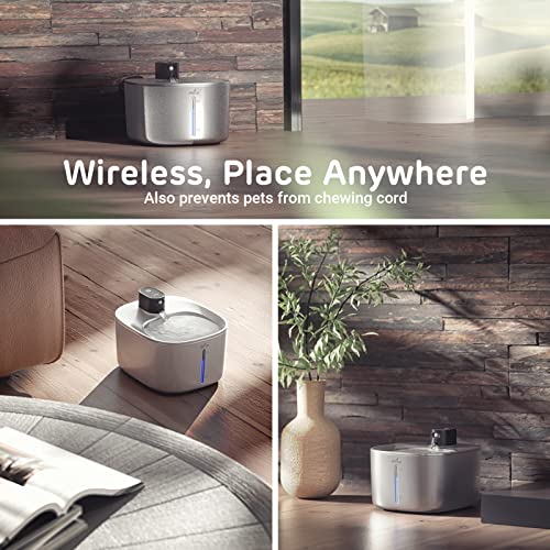 iPettie Runway Fontaine d’eau sans Fil pour Chat en Acier Inoxydable, 1,1 gal/135 oz, Batterie d’eau sans Fil pour Chat fonctionnant avec capteur de Mouvement, Pompe Ultra Calme, pour Chiens