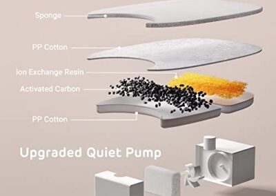 - Filtre et pompe de remplacement – Vous pouvez rechercher B0BZCV19QQ ou B0BZCRNGW6 pour trouver le filtre ou la pompe. Ou trouvez-les sur la {Description du produit}. Achetez les filtres iPettie officiels d’Amazon pour la sécurité de votre animal.