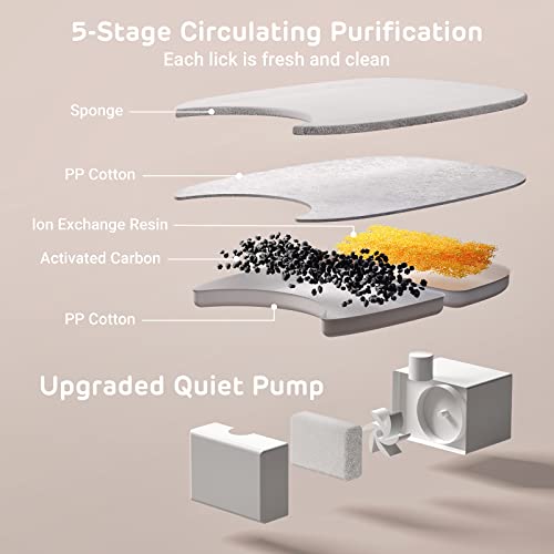 - Système de filtration hygiénique en 5 étapes – Composé de deux filtres, la fontaine pour chat en acier inoxydable fournit une cascade saine et enrichie en oxygène pour les animaux de compagnie.