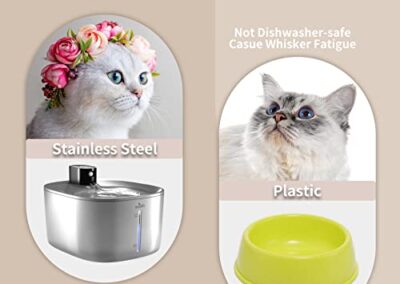 - Fontaine à eau pour chat en acier inoxydable SUS 304 – Durable, passe au lave-vaisselle, facile à nettoyer, meilleure que la fontaine à eau pour chat en plastique ou en céramique, fortement recommandée par les vétérinaires.